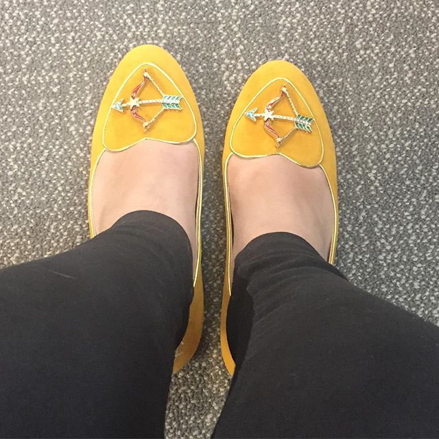 I was iffy on getting the sagittarius shoes because they are a mustard yellow, but I couldn’t get another sign. The collection is currently 50% off, but I was browsing through DealMoon and they had an exclusive additional 10% off. So I finally got a pair! I wore them around the office and got a lot of compliments and the first thing people would say is they loved the color. (Keep in mind I usually wear all black). So I’m pretty happy with my purchase. Don’t forget to break these shoes in because Charlotte Olympia shoes are notorious for cutting up people’s feet.