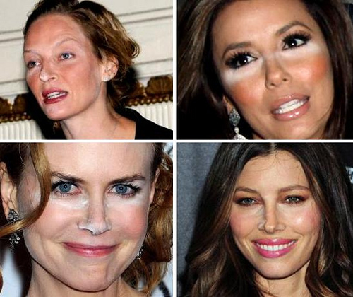 Make sure you blend your foundation very well! If you put a translucent powder on top it will only enhance your streaky face. You can also bake your face with it. To do this, you press the setting powder into your skin while your foundation is still wet. You should press powder onto your skin with a flat-shaped brush or powder puff. Pressing it on will prevent the foundation from moving around or streaking in the process. Also make sure you blend it in well!! You don’t want to look like these celebs: