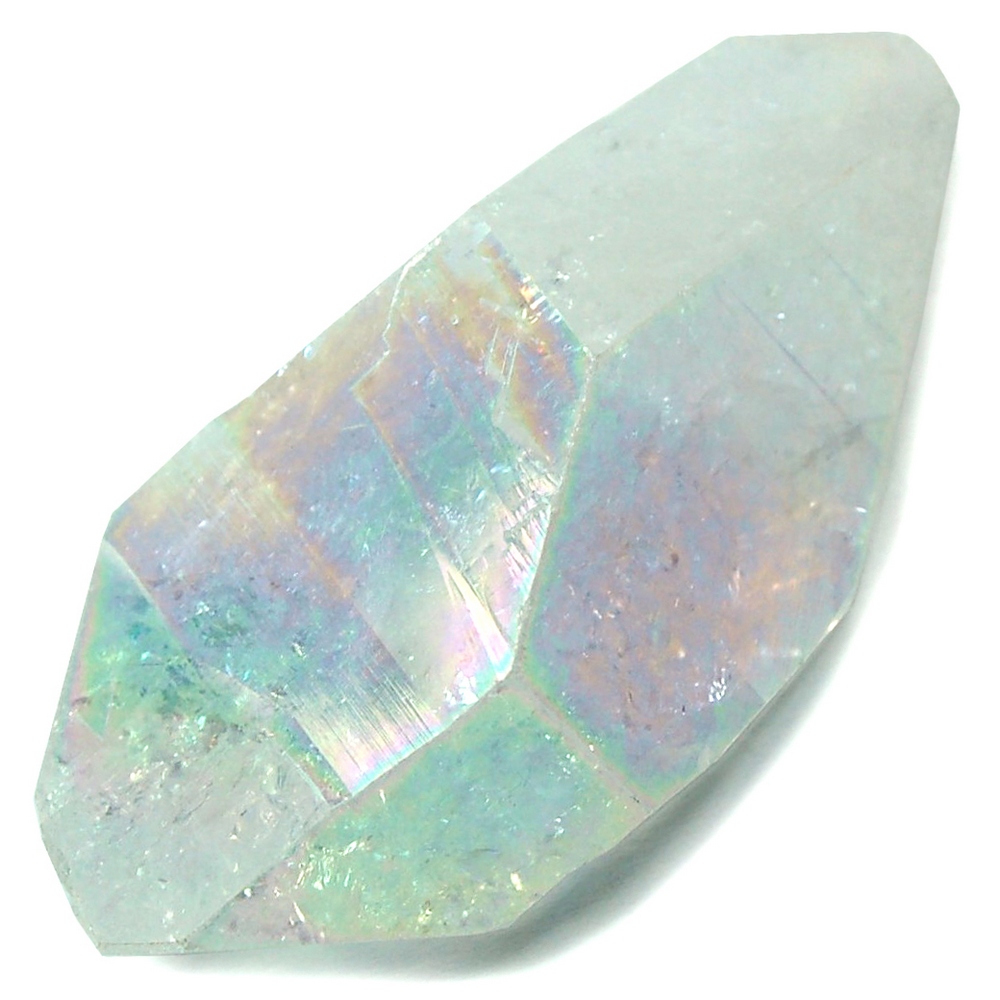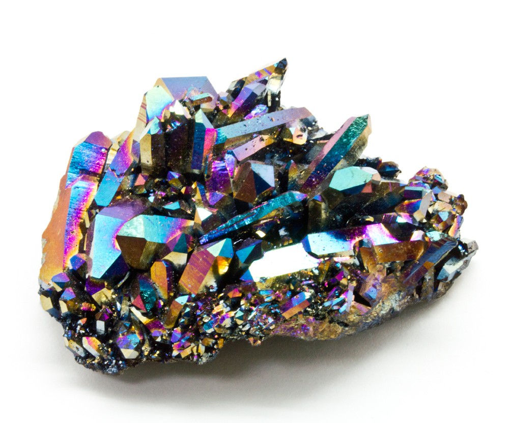 First up is Titanium Quartz ($20), also called Rainbow Flame Aura, or Flame Aura. Titanium Quartz is natural quartz that has been heat infused with rare metals in a vacuum chamber. The pure metals bond richly & deeply with the quartz; resulting in coloring that can neither be scraped nor scratched off. The crystal provides a full spectrum of colors, generating a rainbows that delight your mind as the colors shimmer and change as the crystals are moved in the light.