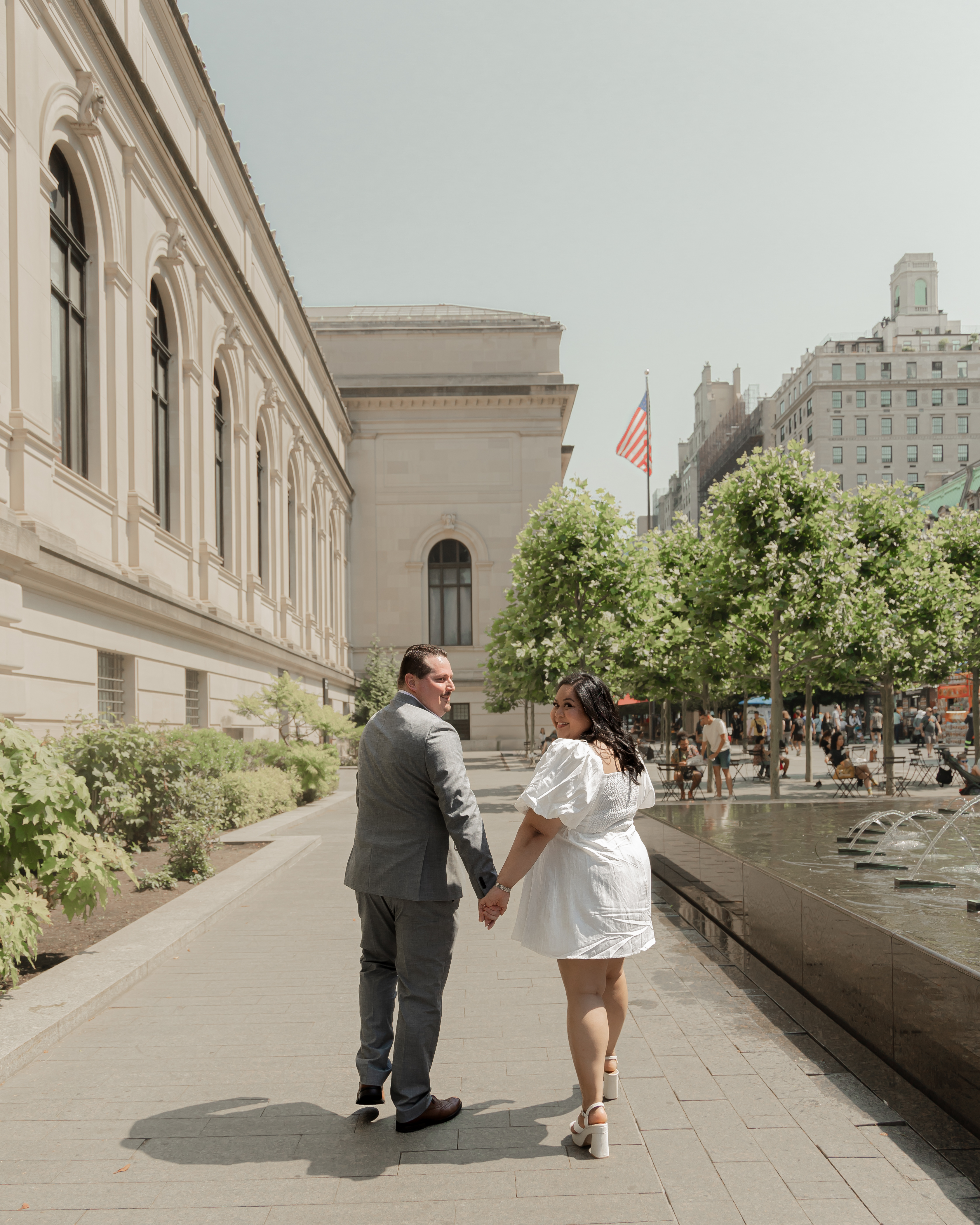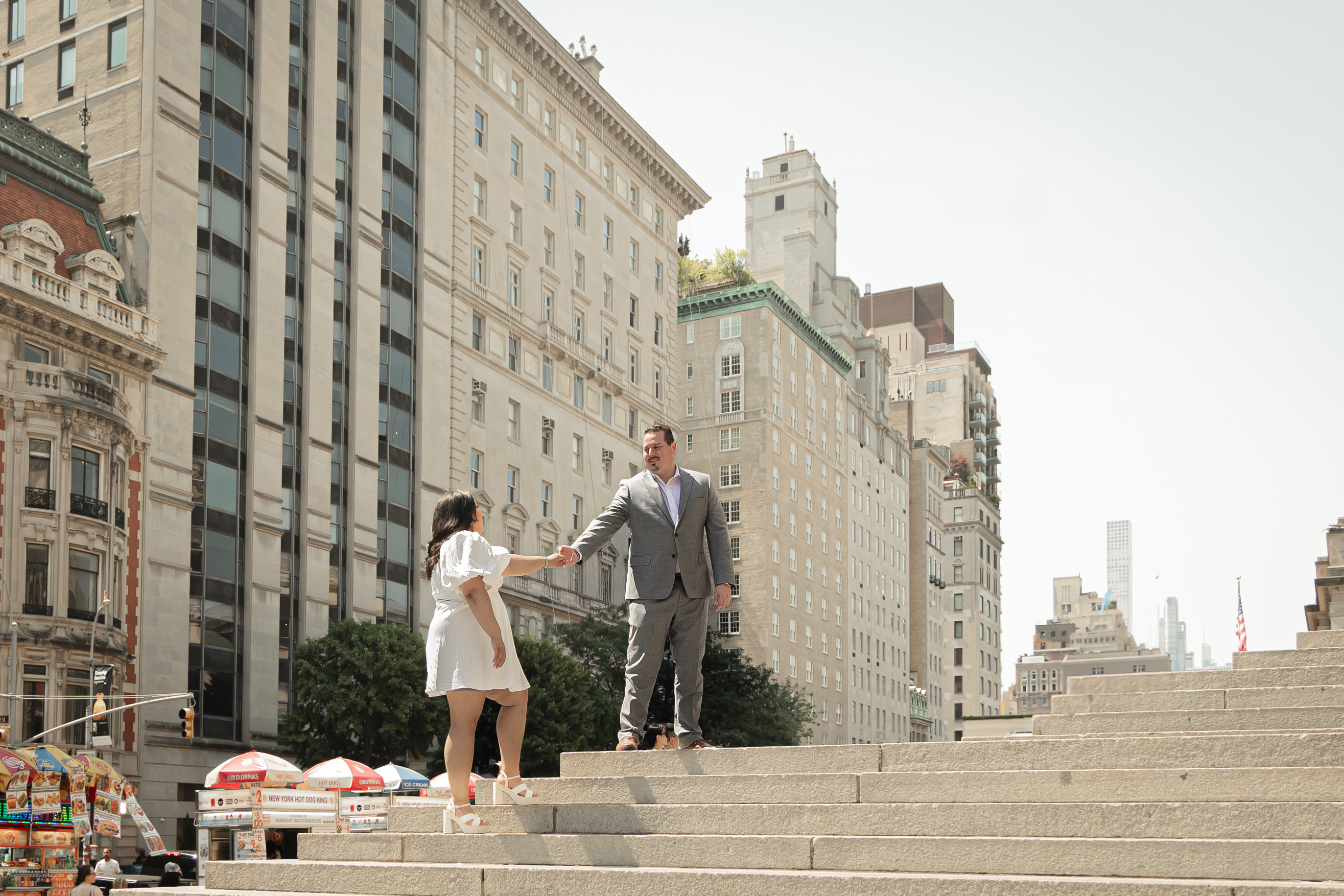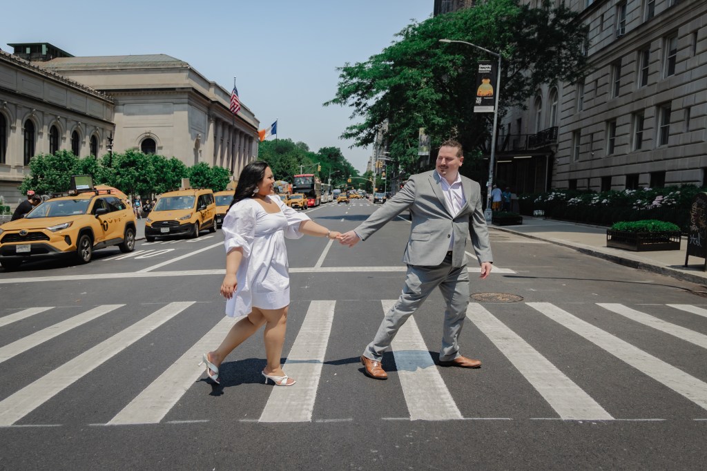 I’ve always adored the glamour of Blair Waldorf and her Upper East Side world, especially those legendary Met steps where so many iconic scenes unfolded. They’ve always symbolized a kind of classic NYC sophistication that I’ve carried with me. So the idea of sitting on those same steps, hand in hand with my future husband, felt like a full-circle moment—one that was uniquely ours.