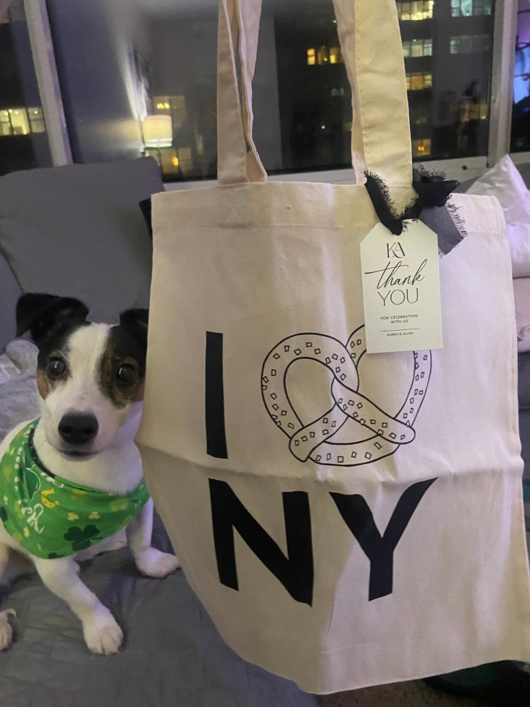 Since we have many family & friends that traveled to come to our shower, we also had a hotel block near the venue. And of course we had custom welcome bags for all our guests who traveled. We got these super cute I Love NY totes. We also wanted guest to be able to use this tote again after the shower so we didn’t print our names on it, instead had tags that had our personalization.