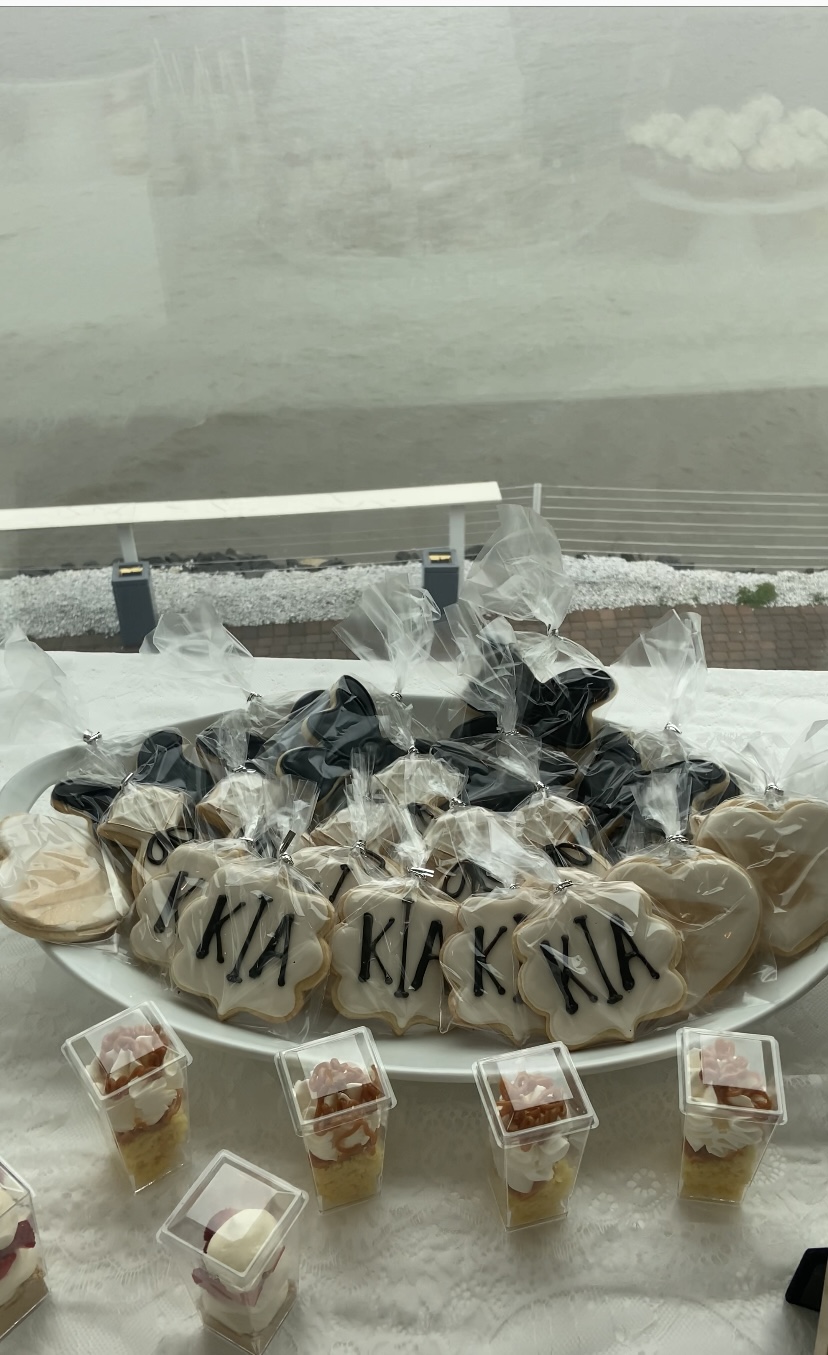 - Custom cookies, chocolate-dipped treats, cupcakes, dessert shooters, and macarons.