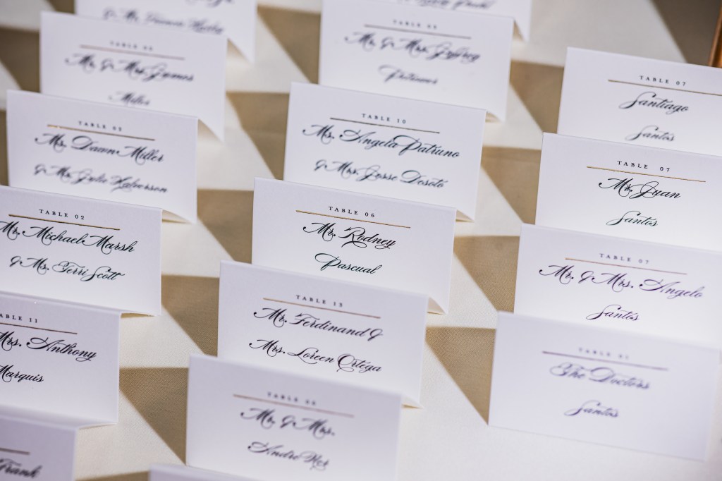 We ordered our escort cards from Minted, keeping everything consistent with the fonts, paper, and overall look. Displaying them in an organized and stylish layout added a moment of sophistication as guests entered the reception.