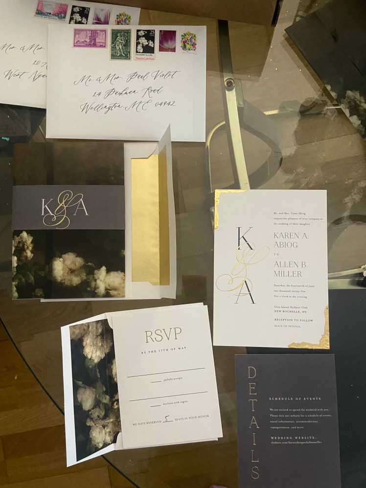 When it came to our wedding stationery, I had a very specific vision: classic, timeless, and elegant—with just the right amount of modern simplicity. I’ve always believed that the paper details set the tone for the entire wedding, and I wanted ours to reflect a sense of quiet luxury—something that felt like us from the very beginning. Initially I thought I could DIY a lot of the stationery. I even bought a printer, but I learned quick, it’s sometimes easier to just buy it. And I fell in love with a ton of stuff off Minted. It can be pricey, so I often waited until there was a discount.