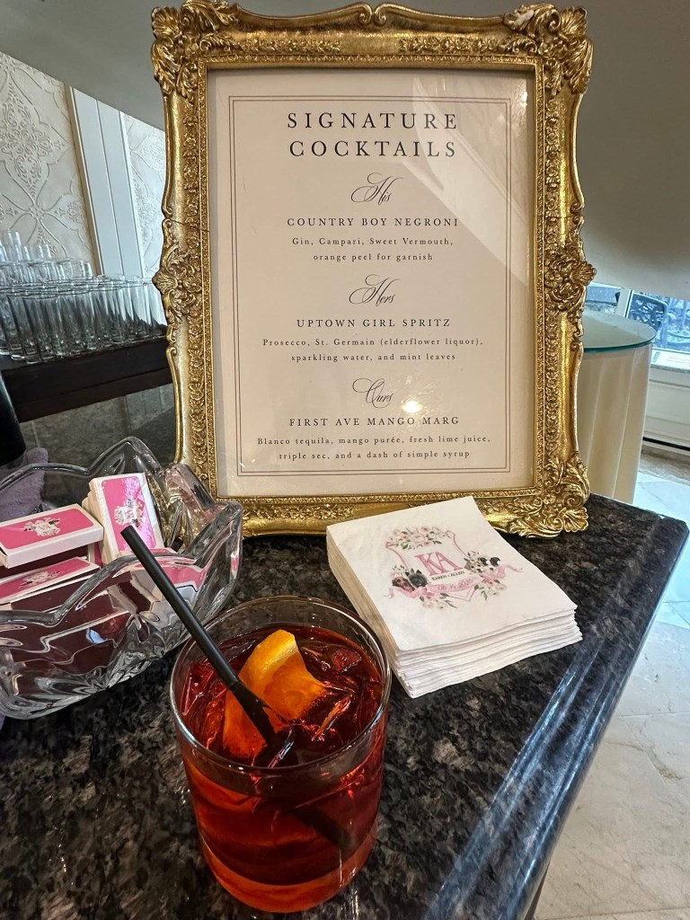 We also ordered custom drink signs from Minted, which were displayed at each bar in chic gold frames. They were simple, stylish, and perfectly on-brand. Plus, they helped tie in the overall color scheme and feel throughout the reception.