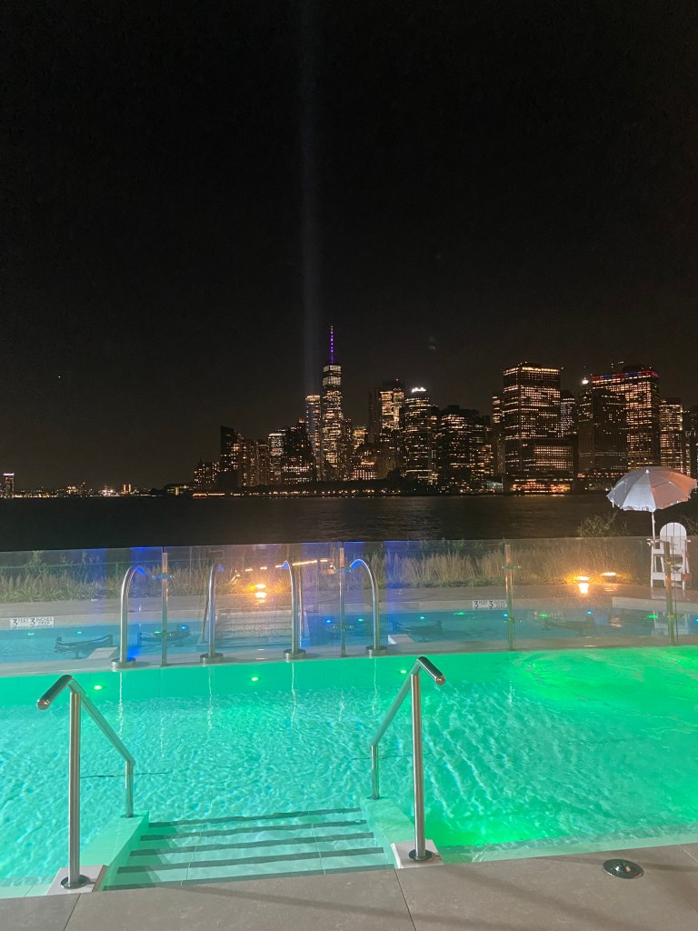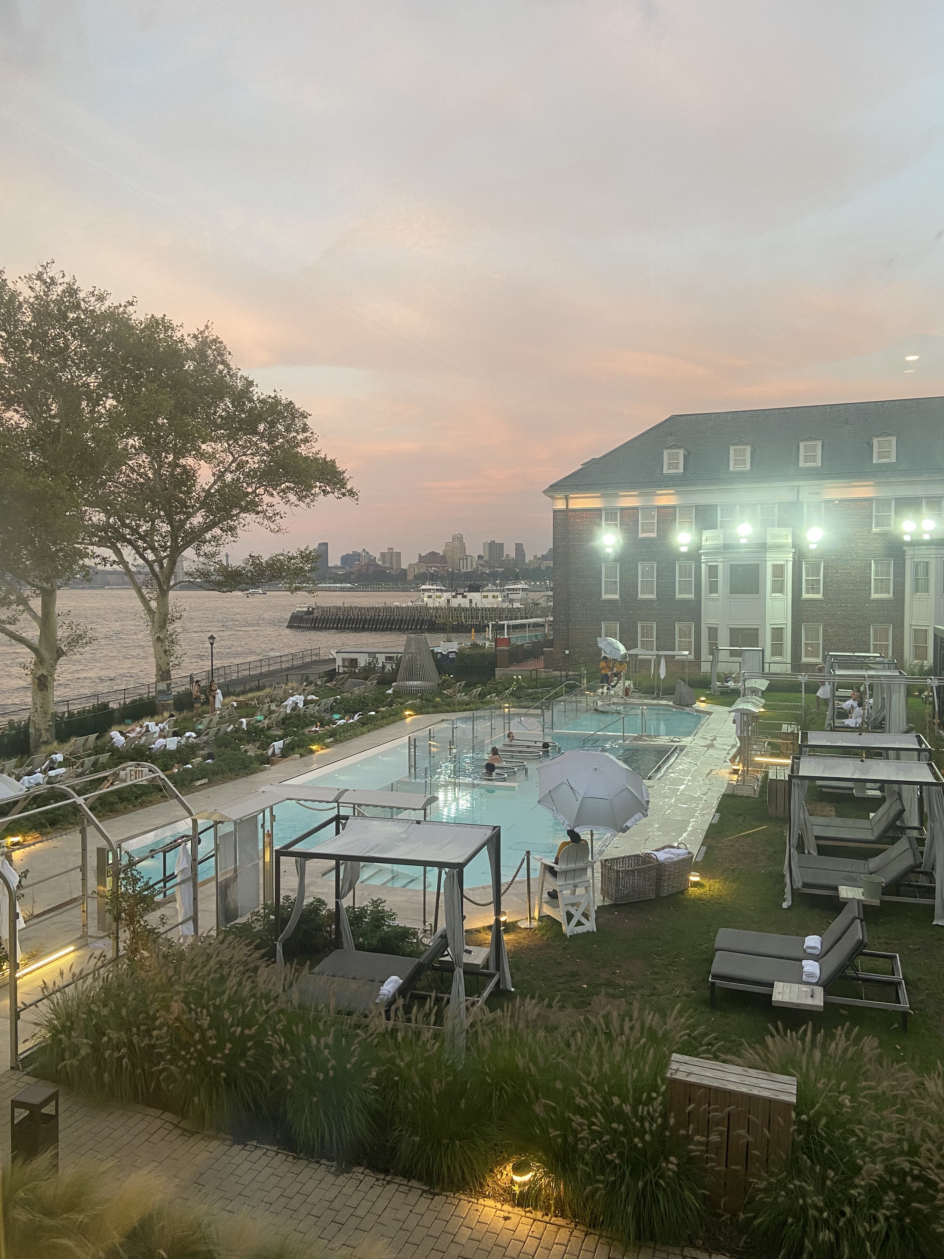 We grabbed a light lunch from the spa’s bistro, which offered small bites and drinks with a view. Nothing fancy, but it hit the spot without weighing us down. They also had a live jazz band which was nice to listen to while we relaxed. The highlight for me was spending the evening outdoors in the heated pools, watching the city slowly light up as the sun set behind the skyline. Manhattan at dusk from a hot tub? Yes, please.