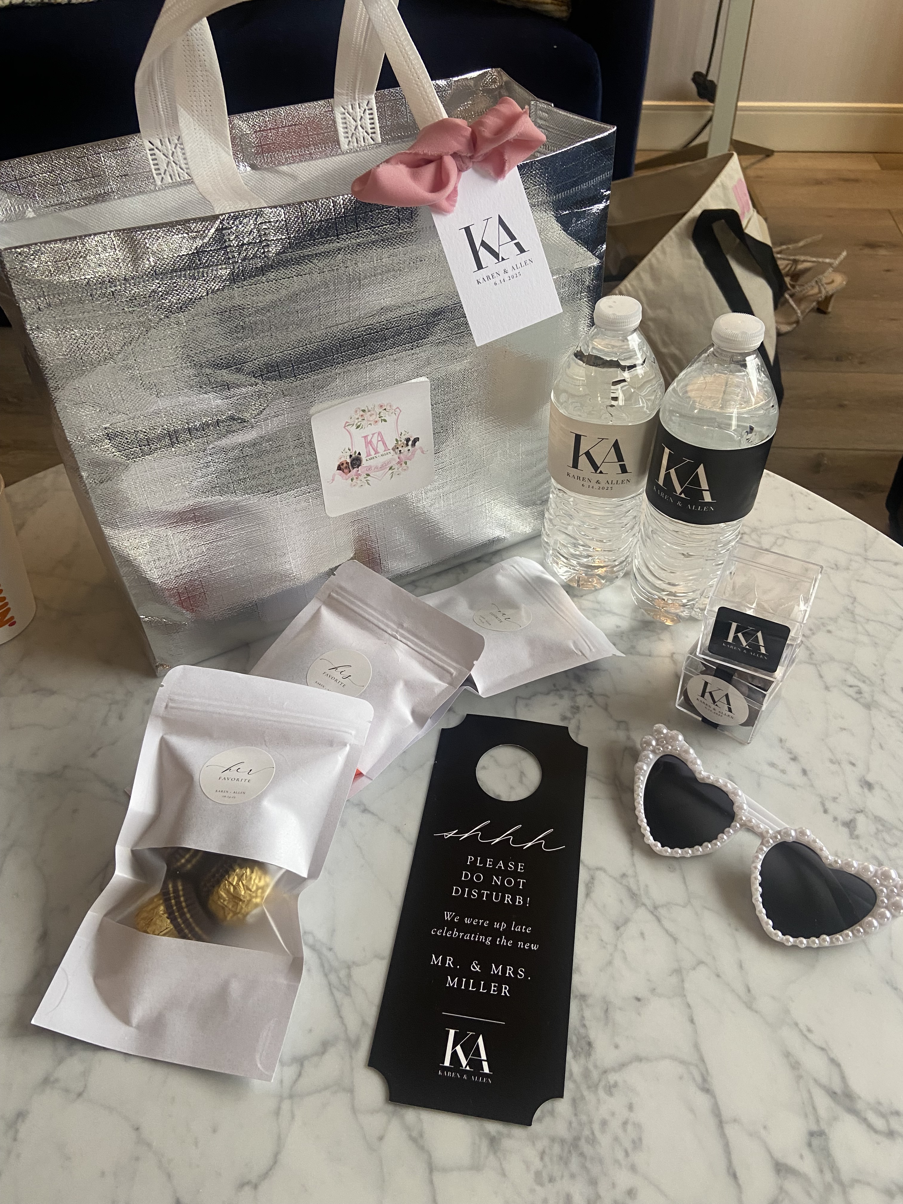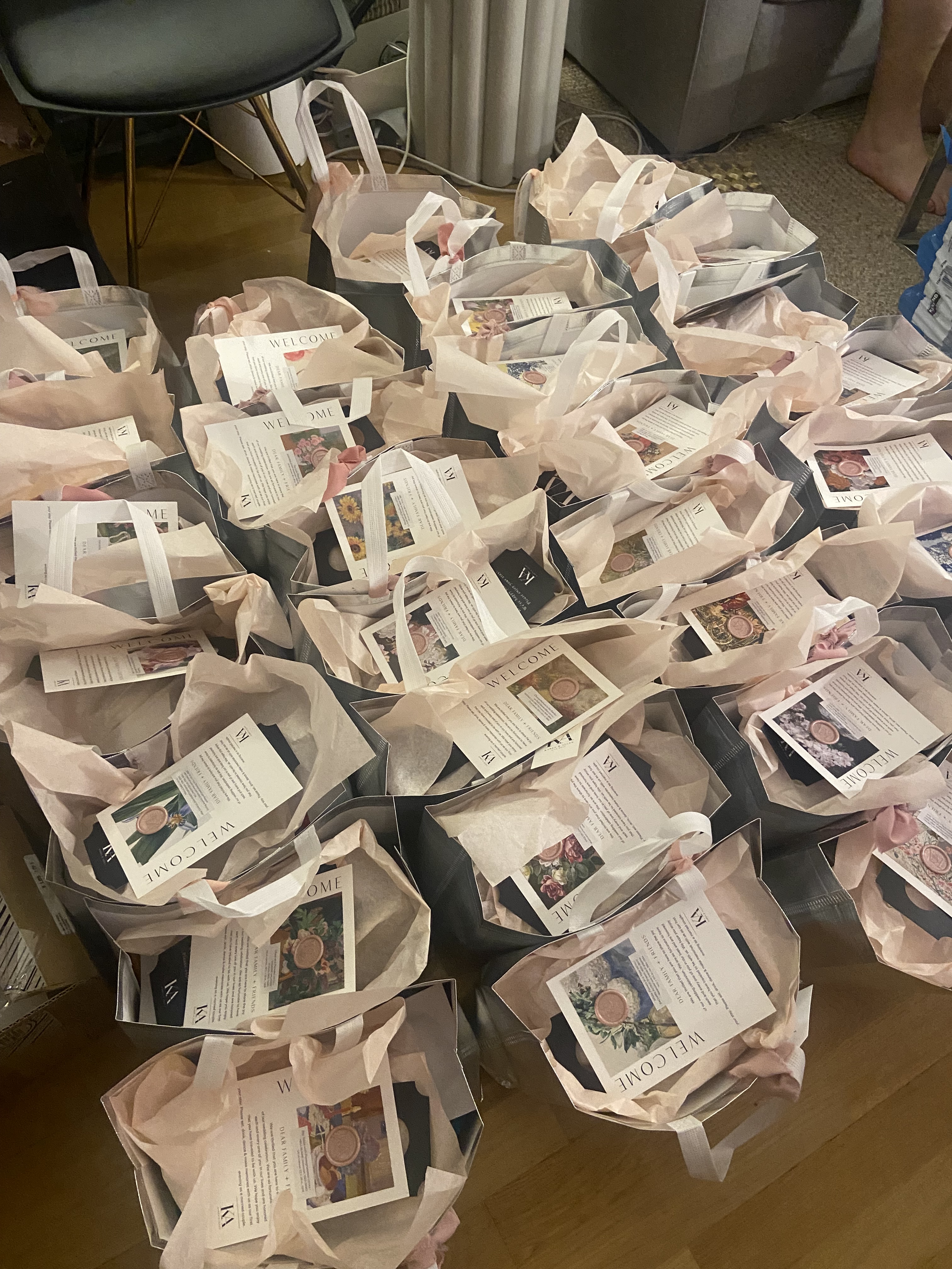 When planning our wedding weekend, one of the things Allen and I were most excited about was welcoming our family and friends who were traveling near and far to celebrate with us. With 30 hotel rooms booked in our room block, we wanted to greet everyone with something special the moment they arrived — something that felt like us. And thus, our wedding welcome bags were born — perfectly aligned with our wedding theme: “Love is a Work of Art.”