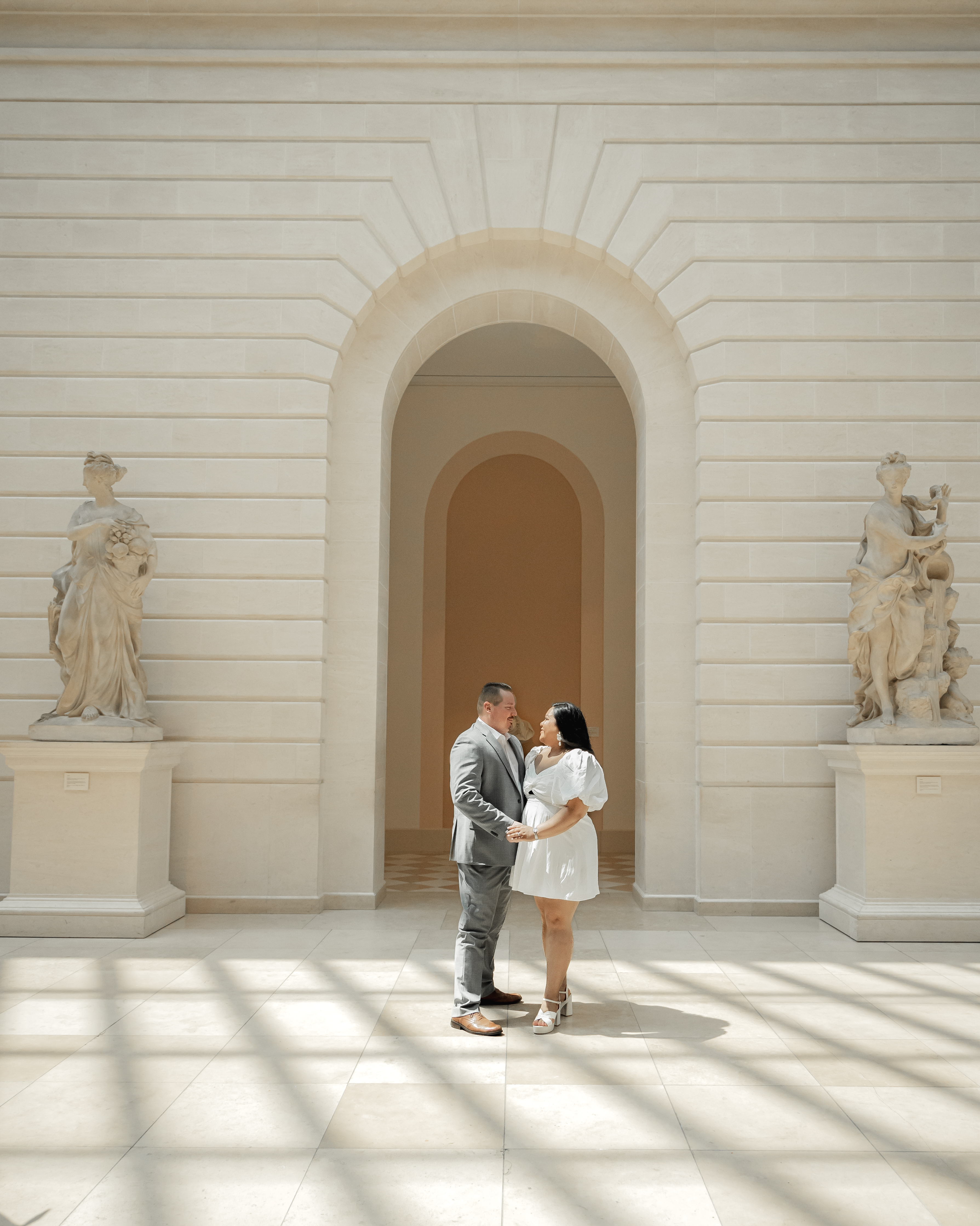 The very first hint of our theme was actually hidden in our engagement photos at The Metropolitan Museum of Art. The Met has always been a special place for us—it was one of our very first dates when we started dating in New York City, and we often looked back on that day as one of our best. It felt only fitting that our engagement shoot would be there, surrounded by masterpieces that mirrored how we saw our love story: timeless, layered, and beautifully complex.