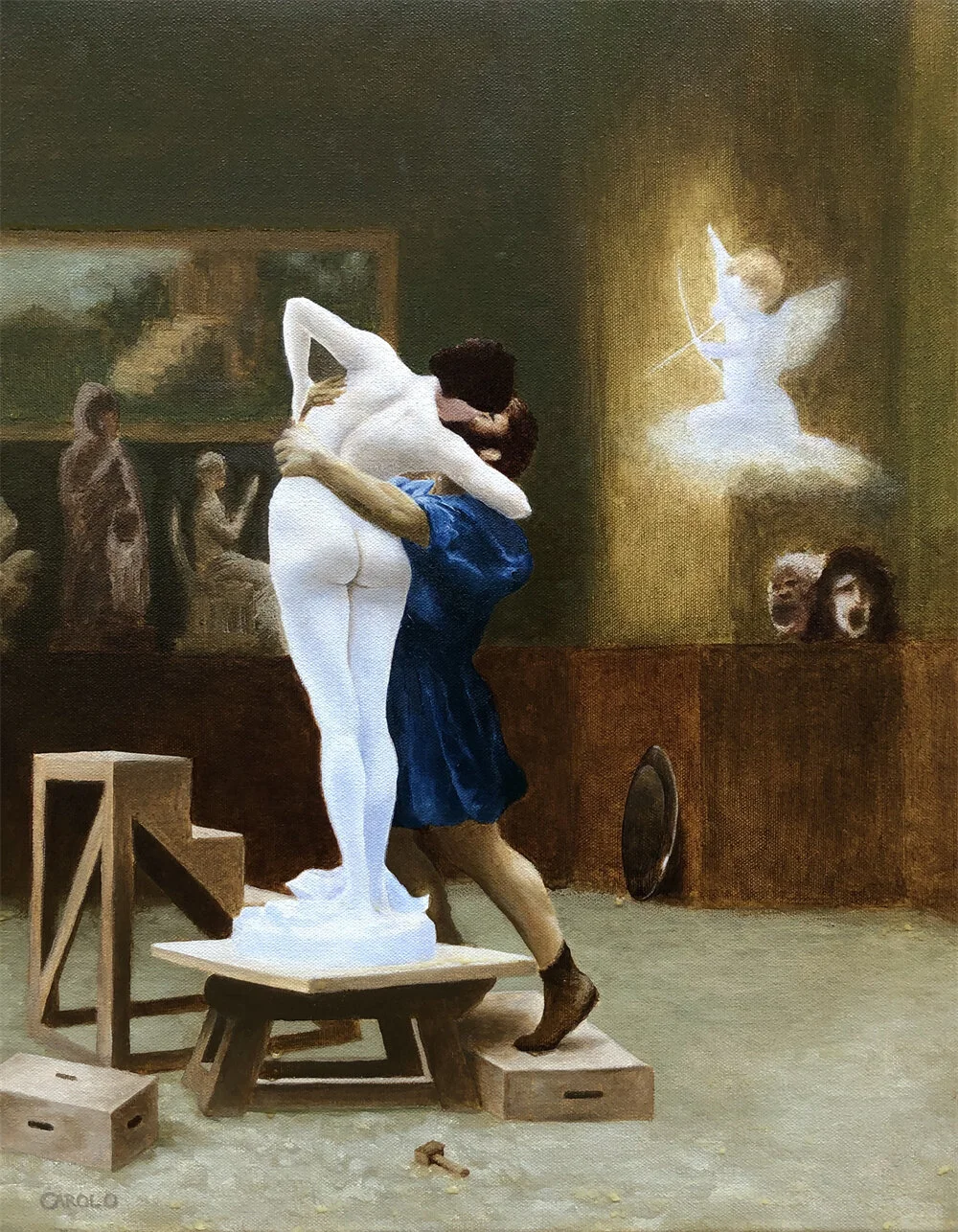 Art comes to life in the classic Greek myth of Pygmalion and Galatea. A sculptor falls madly in love with his statue and, touched by his story, the goddess Aphrodite brings her alive. But the most famous depiction is the one where Galatea is seen from behind, still emerging from her stone state and leaning into Pygmalion’s kiss.
