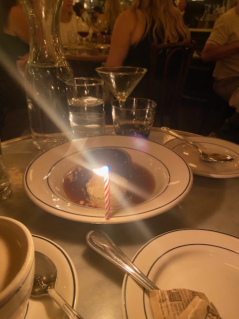 Of course, we had to get dessert — sticky toffee pudding — and that ended things on a sweeter note. They even put a cute little candle on it.