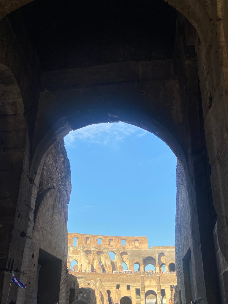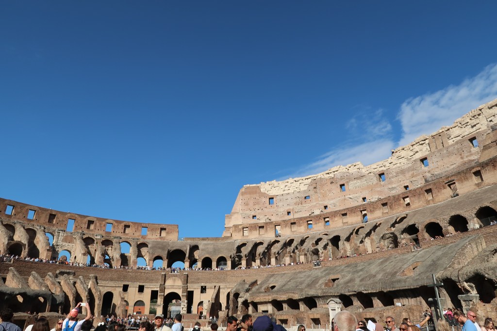 The Colosseum instantly takes your breath away—a massive arena where gladiators once fought, and thousands of spectators cheered. Standing inside, it’s hard not to imagine the energy and spectacle that once filled this iconic amphitheater.
