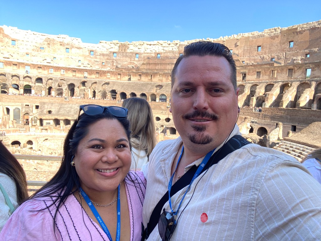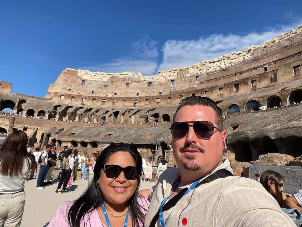Exiting into St. Peter’s Square, the atmosphere was electric. For the Jubilee, the Holy Doors were open—a rare and symbolic opportunity representing forgiveness and renewal. Passing through them felt like stepping into a living tradition, a moment that will stay with us forever. We walked hand in hand as newlyweds and made a wish as we touched the doors. Inside St. Peter’s Basilica, the soaring dome, intricate mosaics, and serene chapels combined to create a sense of awe and reflection that only the heart of the Catholic Church can inspire.