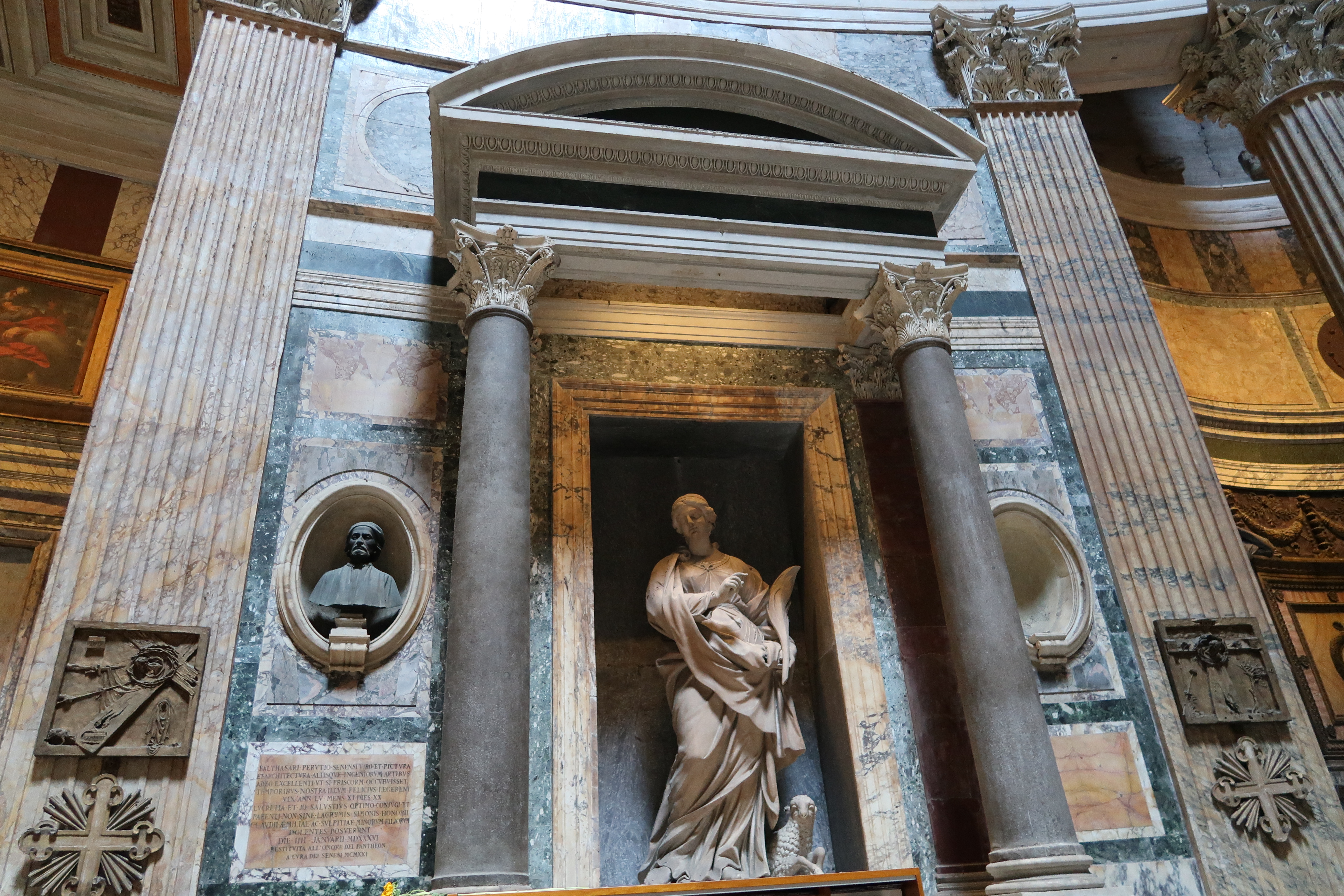 Pantheon – ancient and awe-inspiring. Remember to cover your shoulders and knees here; it’s both monument and sacred space. The Pantheon was originally built around 27 BCE by Marcus Agrippa but was completely rebuilt by Emperor Hadrian around 118–125 CE. Its name comes from the Greek words pan (all) and theos (gods), reflecting its original purpose as a temple dedicated to all Roman gods. The building is famous for its massive dome, which remains the world’s largest unreinforced concrete dome, and the oculus at its center, a circular opening that lets in natural light and symbolizes the connection between the temple and the heavens.