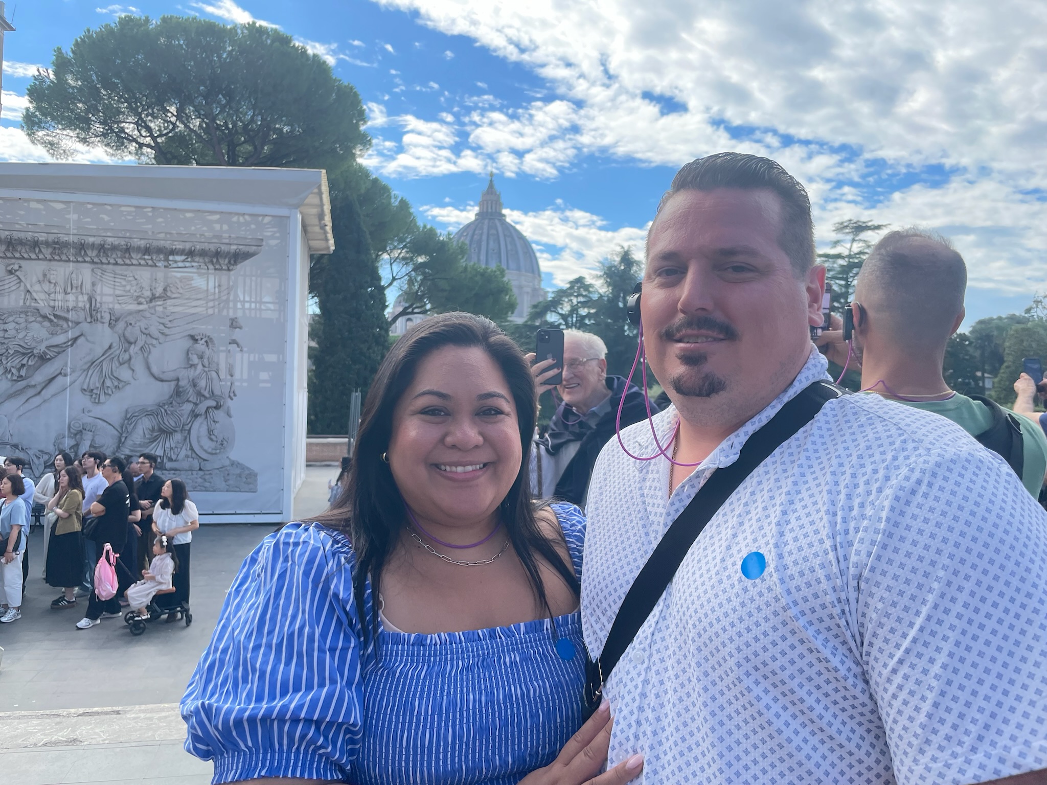 Exiting into St. Peter’s Square, the atmosphere was electric. For the Jubilee, the Holy Doors were open—a rare and symbolic opportunity representing forgiveness and renewal. Passing through them felt like stepping into a living tradition, a moment that will stay with us forever. We walked hand in hand as newlyweds and made a wish as we touched the doors. Inside St. Peter’s Basilica, the soaring dome, intricate mosaics, and serene chapels combined to create a sense of awe and reflection that only the heart of the Catholic Church can inspire.
