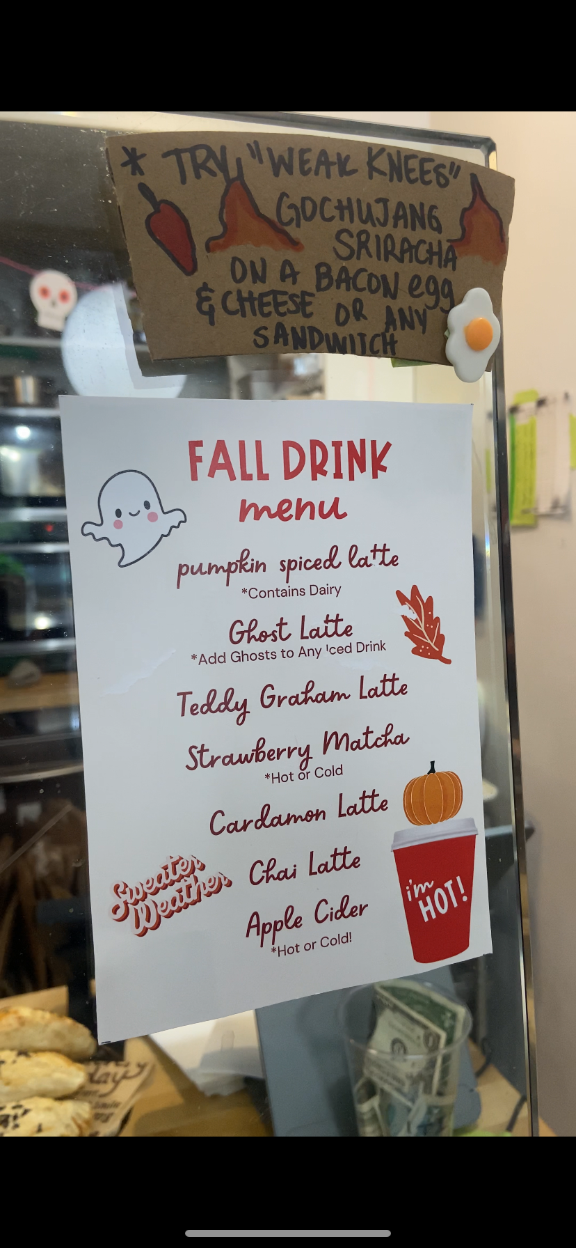 I ordered the Ghost Latte with the Teddy Graham cracker flavor, and yes, it was as cute (and delicious) as it sounds. The “ghost” is actually a cloud of marshmallow fluff floating on top of your latte, and you can pick your flavor base. Padoca offers it with their seasonal fall drinks — think strawberry matcha (yum!), cardamom latte, chai latte, or apple cider. The whole thing is festive, fun, and perfectly extra in the best way.