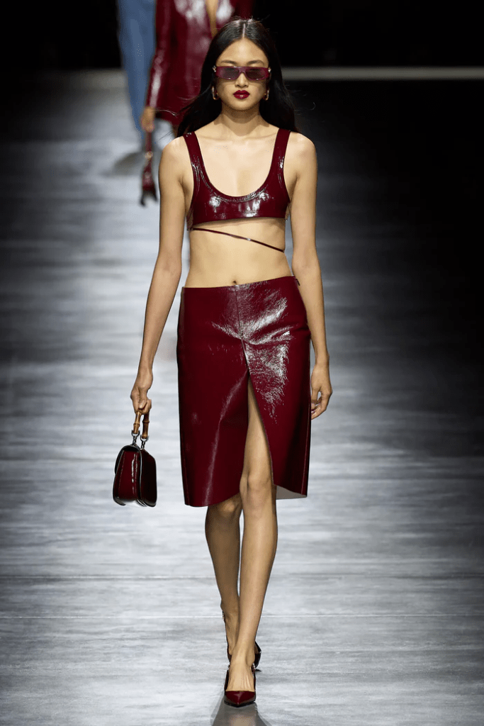 At Gucci’s Fall/Winter 2024 show, creative director Sabato De Sarno doubled down on a deep oxblood red (dubbed “Gucci Rosso/Ancora Rosso”) across leather coats, bags and boots. This collection helped elevate burgundy/oxblood from seasonal accent to full-fledged “house colour” status in high fashion.