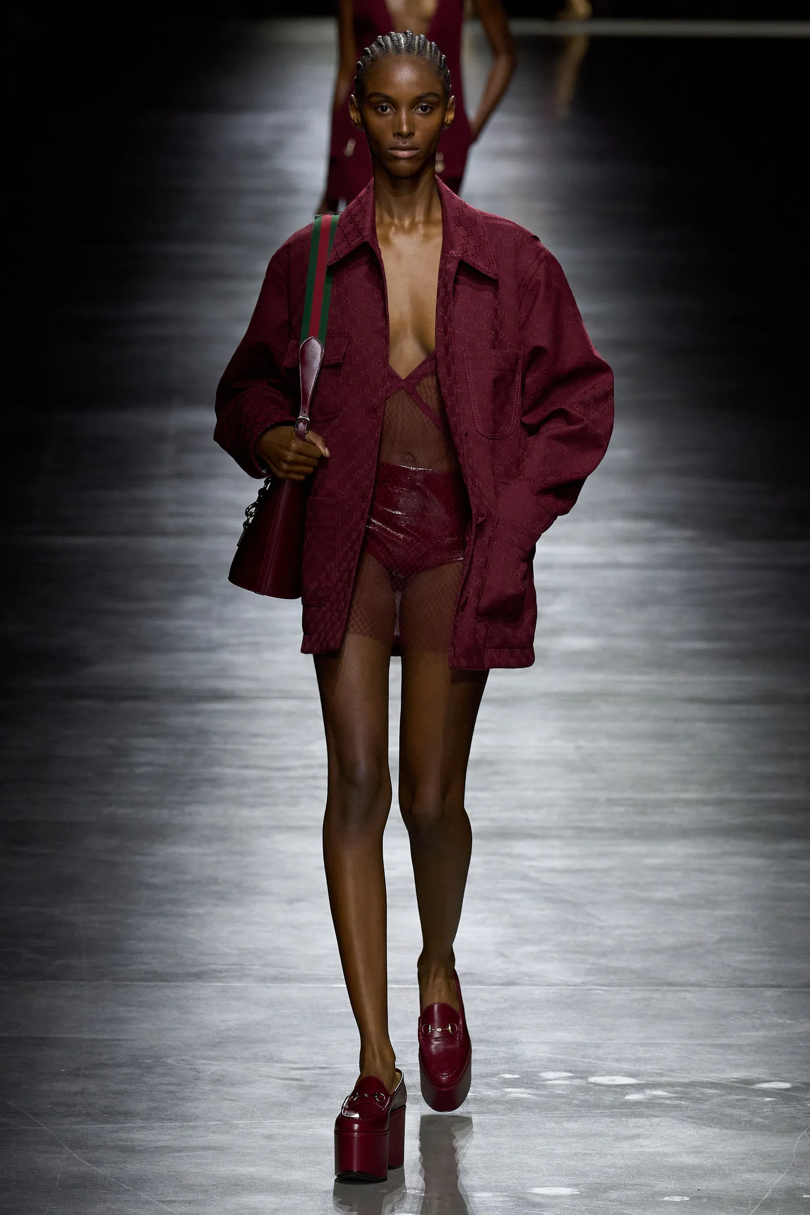 My top 3 standout runway looks that showcase the rich burgundy/oxblood hue in full effect:
