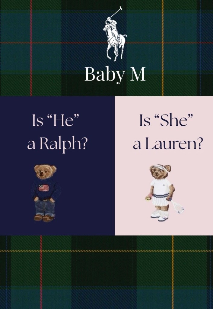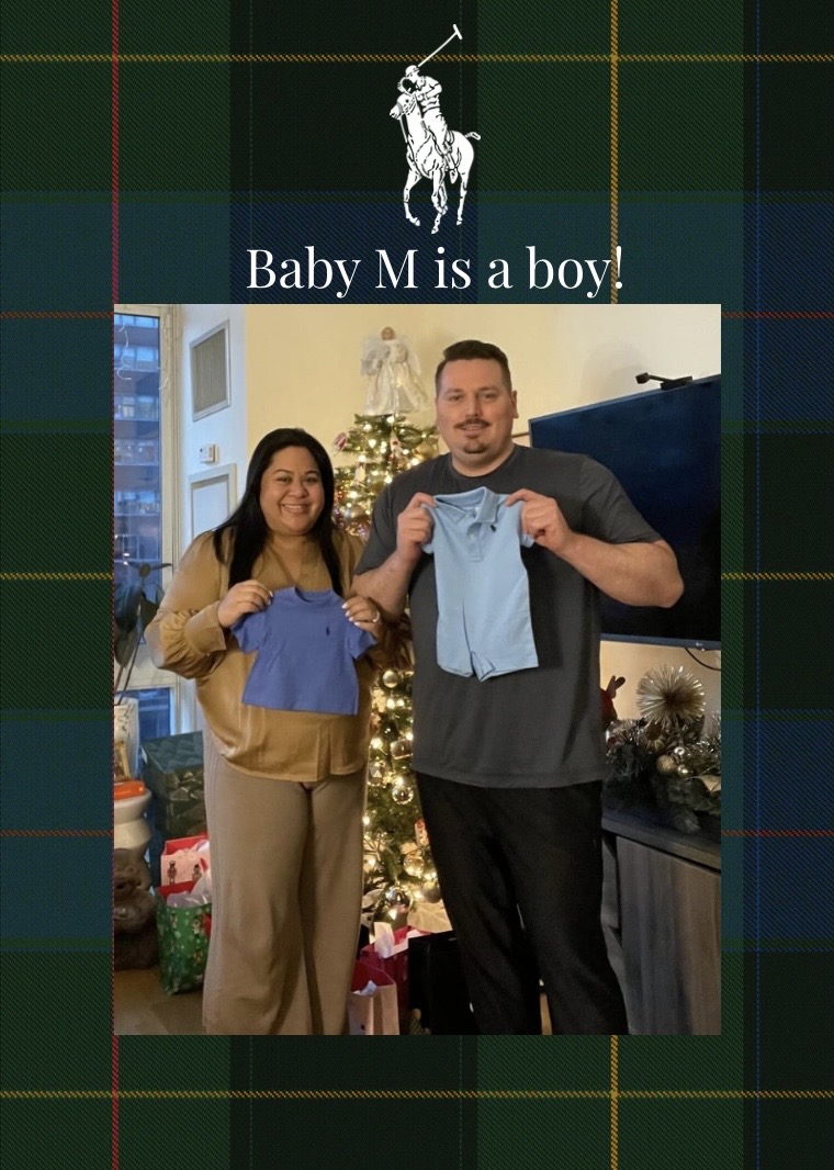 They asked us to open a gift on camera. Inside were baby clothes—and tucked within was the cutest Ralph Lauren set for a baby boy. My parents were overjoyed at the thought of having a grandson. Since then, my mom and I may have gone a little overboard—we’ve bought just about every Ralph Lauren baby set available, plus a few Lacoste ones too. He’s going to be so cute matching his dad.